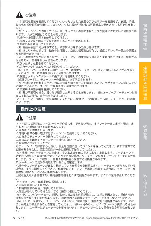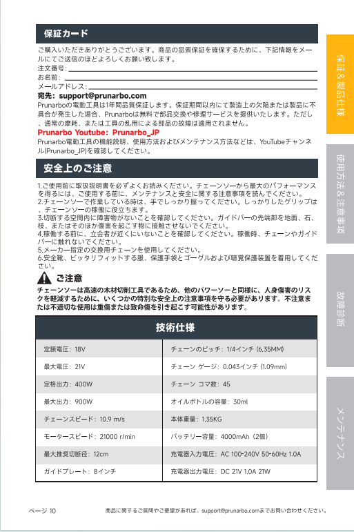 電動チェーンソー PR-E8 の取扱説明書